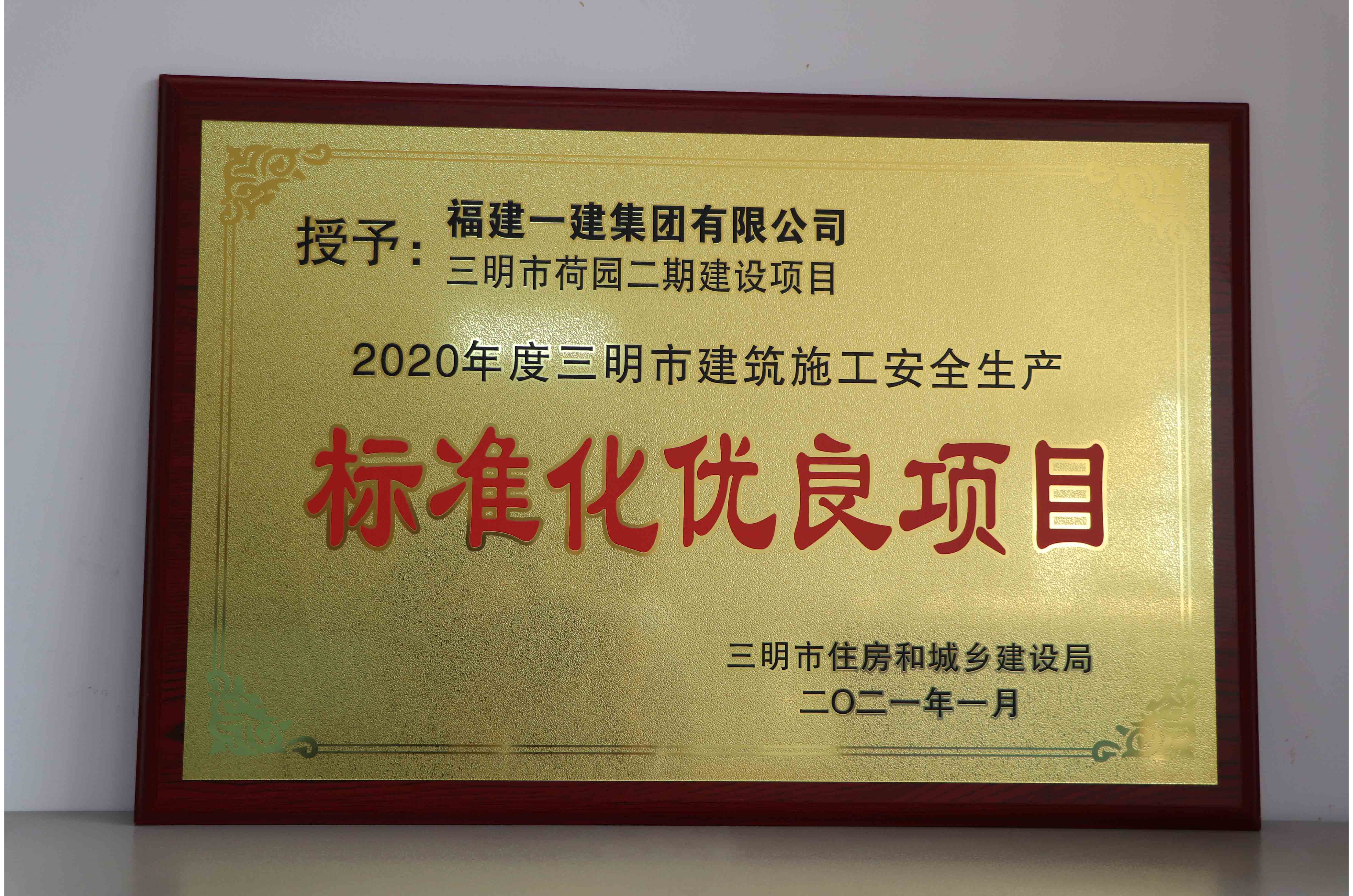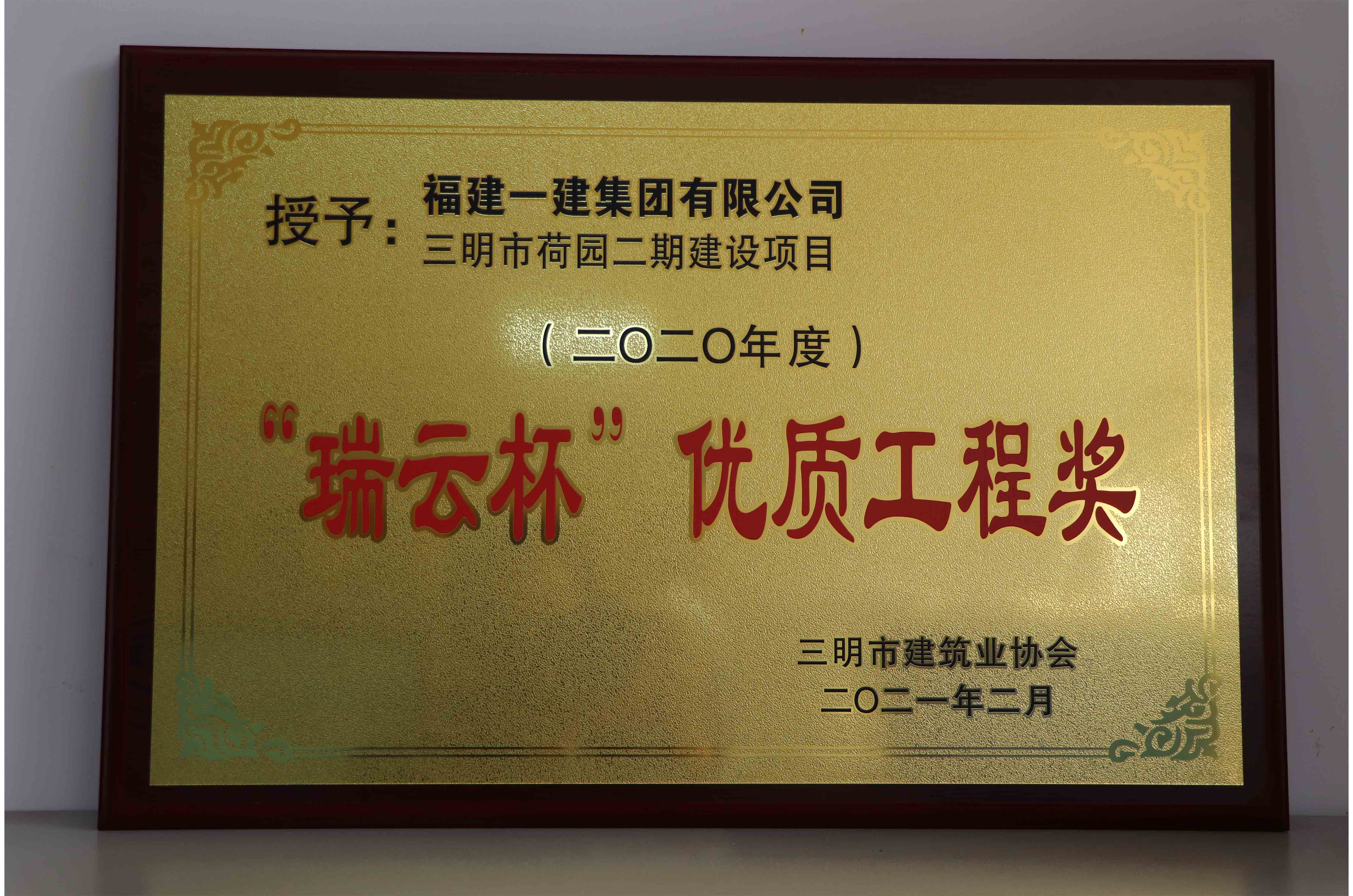 近日,工口 承建的三明市荷园二期建设项目荣获三明市建筑业协会颁发的2020年度“瑞云杯”优质工程奖和三明市住房和城乡建设局颁发的标准化优良项目两项荣誉。